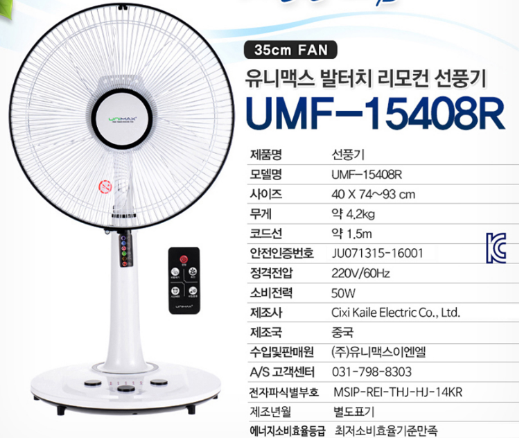 4. 유니맥스 발터치 리모컨 선풍기
