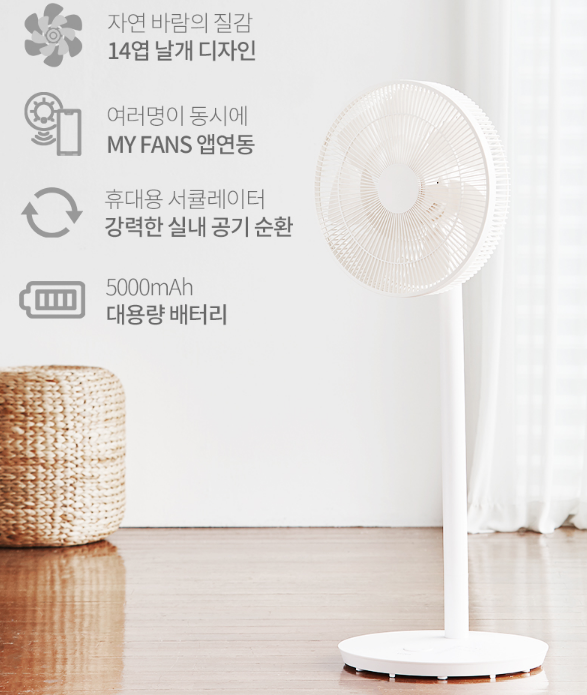 쿠팡 인터넷가 기준 12만 원대에 구매할 수 있는 무선 제품입니다. 배터리 5,000mAh 높은 용량으로 나왔으며, 무선 제품이지만 날개의 크기도 일반선풍기 크기라서 샤오미 무선 제품과 비교했을 때는 냉방 능력은 더 좋습니다.