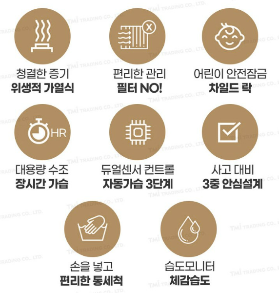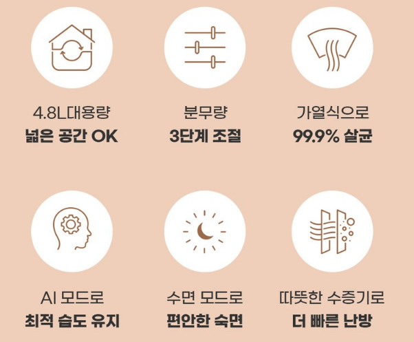 이 기능은 사용자가 수동으로 조절할 필요 없이 항상 쾌적한 습도를 유지할 수 있게 해줍니다. 위생 면에서도 우수한 점을 보여줍니다.