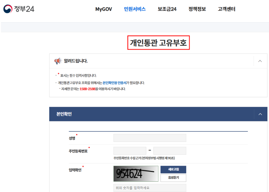 정부24라는 통합 서비스를 통해서도 개인통관고유부호를 조회할 수 있습니다.