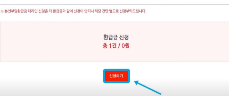 ⑦ 미지급 환급금이 있다면 환급받을 항목을 선택하고 신청하기를 클릭하면 신청이 완료됩니다.