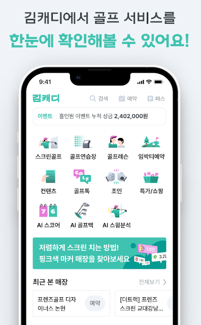 - 셀프 체크인 서비스: 대기 시간을 줄이고 대면 접촉을 최소화할 수 있는 기능입니다. 위치 기반, QR 코드, 손바닥 인증 등 다양한 방식으로 체크인할 수 있어 빠르게 라운드를 시작할 수 있습니다.