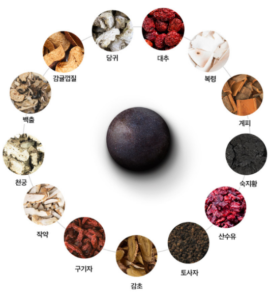 홍삼은 피로물질인 젖산의 생성을 억제하고, 에너지 대사를 활성화하여 피로를 개선하는 데 도움을 줍니다. 또한, 당귀, 천궁, 황기 등은 기혈을 보충하여 피로를 풀어주는 효능이 있습니다.