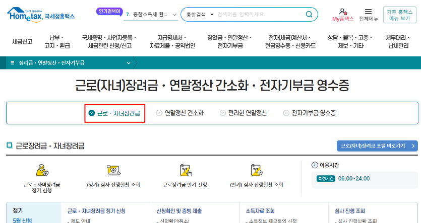 ② 상단에 근로·자녀 장려금 메뉴 눌러주세요.