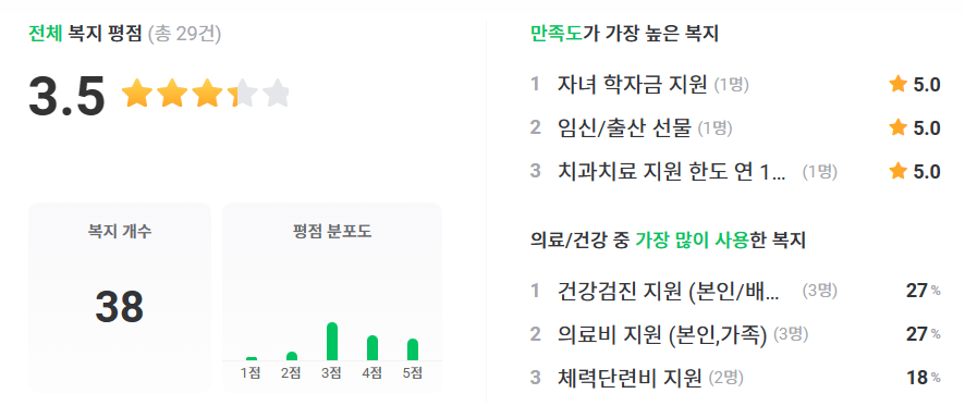 의료/건강 건강검진 지원(본인/배우자), 의료비 지원(본인, 가족), 체력단련비 지원, 상해/실손 보험 지원, 치과치료 지원 한도 연 100만 원, 치과 진료 지원