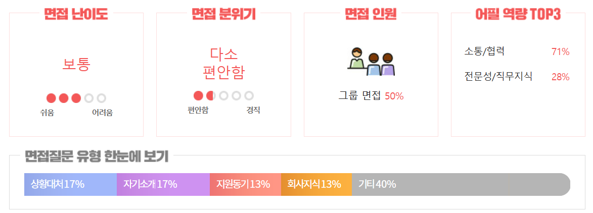 ▲답변마다 피드백을 해주시는 점이 인상 깊었습니다. ▲자기소개도 안 시키고 아이스브레이킹하면서 자연스럽게 면접이 시작되어서 편했고, 압박 질문이 살짝 있었지만 반응을 잘해주셔서 좋았습니다. ▲면접자를 배려해주려고 하고 크게 어려움은 없었습니다. ▲확실한 제조 공정에 대한 지식이 없으면 대답하기 힘든 질문들을 했습니다. ▲답변을 외운다기 보다는 평소에 본인의 가치관을 정리하고 이미지 메이킹을 하는 게 중요함