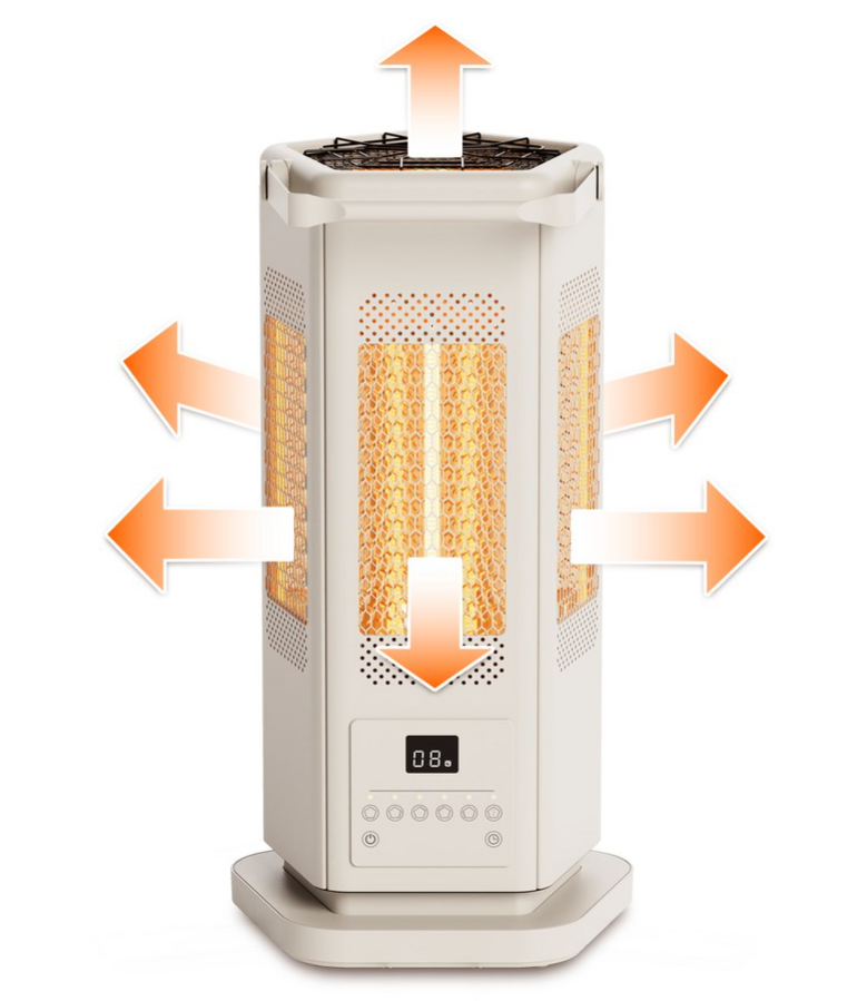 내부 구조에도 특별한 기술이 적용되었습니다. 육각형의 벌집 구조 반사판은 열의 집중도를 높이고 더 멀리 퍼질 수 있도록 설계되었습니다. 이러한 구조는 열의 손실을 최소화하면서도 효율적인 열 분산을 가능하게 합니다.