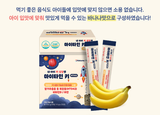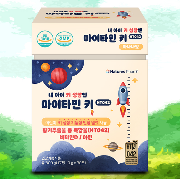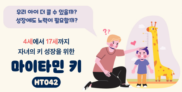 마이타민 키의 가장 큰 특징은 환기 추출물로 되어 있는 키성장 기능 인증을 받은 ht042가 들어가 있다는 점입니다.