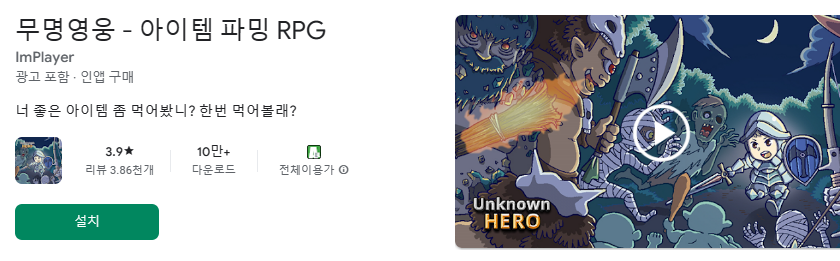 1인 개발로 5년이 넘는 시간 동안 서비스를 하고 있는 게임인데, 화려한 그래픽을 앞세우진 않았지만, RPG의 핵심을 잘 살린 게임 무명영웅입니다.