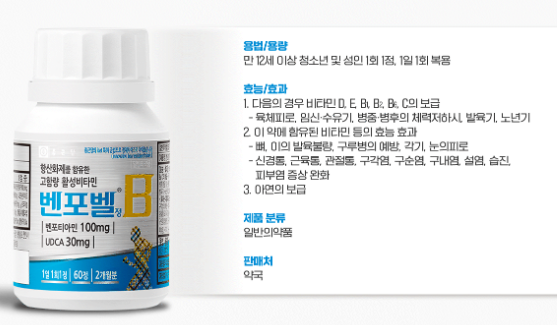 활성비타민B1인 벤포티아민 위주로 만든 비타민으로 벤포티아민은 비타민B1 중에서 피로 회복이나 근육통 측면에서 비활성 비타민 보다 매우 뛰어난 효과를 냅니다.