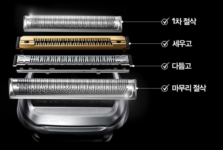 브라운의 플래그십 모델인 시리즈 9 Pro Plus는 현대 면도 기술의 정점을 보여줍니다. 혁신적인 4단계 멀티 커팅 시스템을 통해 -0.01mm까지의 초밀착 면도를 실현했습니다. 이는 수동면도기에 버금가는 완벽한 면도 결과를 보장합니다.