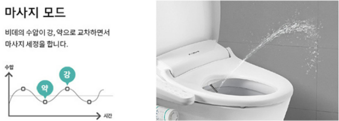 토수량이 많을수록 부드러운 물줄기가 나오며 토수량이 적으면 물줄기가 따갑고 세척력이 떨어집니다. 따라서 토수량이 적은 비데는 오히려 휴지로 닦는 것보다 세척하는 데 시간이 더 걸릴 수 있습니다.