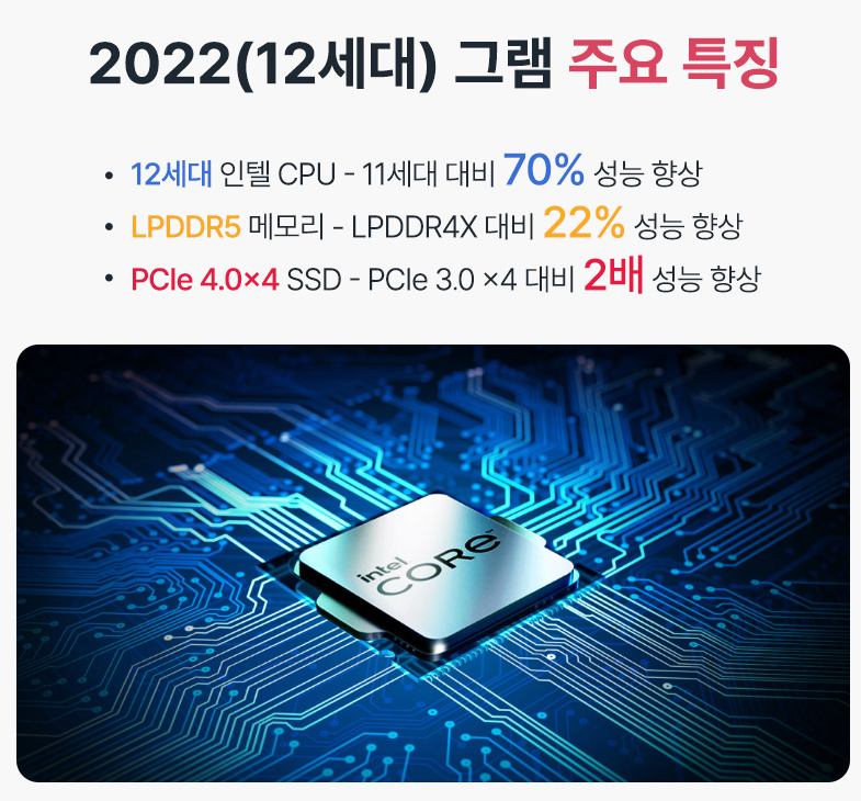 이 제품은 12세대 인텔 코어 i7 프로세서와 UHD Graphics로 높은 성능을 보여줍니다. 멀티태스킹이나 고화질 영상 재생도 끊김없이 잘 되고 가벼운 게임도 가능합니다.