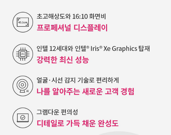 해상도를 제외하고 대부분의 스펙은 첫 번째 제품과 동일하고 lg에서 그램 15와 16은 모두 인기 있는 제품들 입니다.