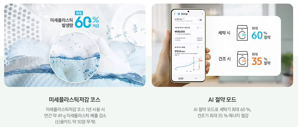 건조 기술에서도 두 회사는 서로 다른 접근 방식을 취하고 있습니다. 삼성은 '히터 추가 건조 방식'을 채택하고 있습니다. 이는 기존의 히트 펌프 방식에 추가로 히터를 장착하여 초기 건조 온도를 빠르게 상승시키는 방식입니다.