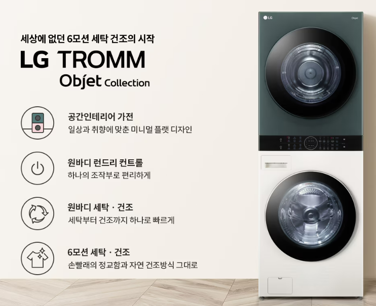 LG는 '오브제 컬렉션'을 통해 세련되고 모던한 디자인의 제품을 선보이고 있으며, 다양한 색상 옵션을 제공하여 사용자의 선택의 폭을 넓히고 있습니다.