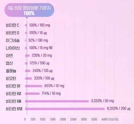 종합비타민 답게 비타민B군은 고루 다 들어가 있습니다. 엽산도 따로 보충하지 않아도 돼서 임산부 분들의 종합비타민으로도 손색이 없다는걸 말씀드리고 싶습니다.