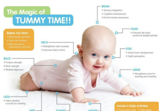 아기의 상체 근육을 강화하는 도움을 줘서 스스로 목을 가누고 팔과 다리를 움직일 수 있도록 도와줍니다. 그리고 배로 엎드려 있으면 머리의 무게가 균형있게 분산되어 두개골이 비대칭으로 평평해지는 사두증 예방에도 도움이 된다고 합니다.