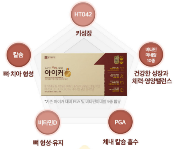 아이커의 주원료인 황기추출물 등 복합물은 식약처에서 키 성장 기능성을 인정받은 원료입니다.