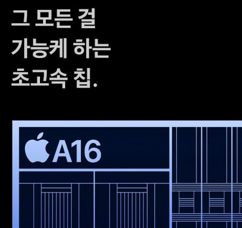 A16 BIONIC으로 전작 대비 한 단계 상향된 두뇌가 탑재되었습니다. 애플의 두뇌는 애초에 고성능이기 때문에 전작 대비 일정 부분 향상만 되어도 월등한 성능차이를 보여줍니다.