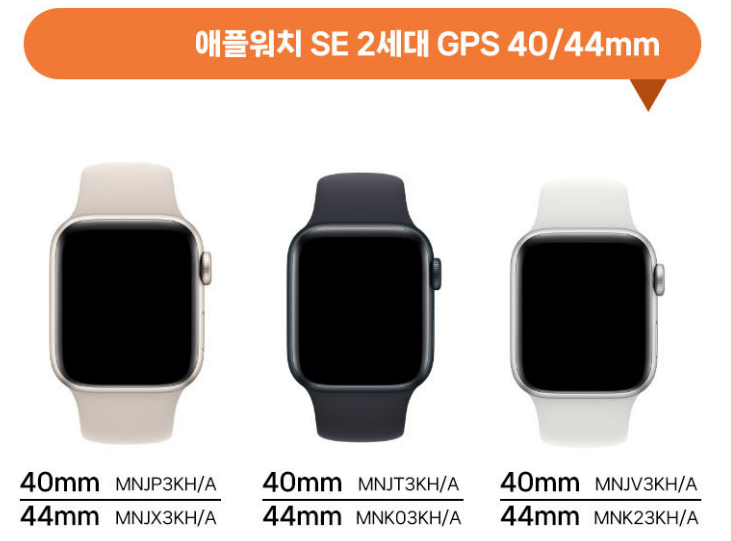 현재 가장 저렴한 모델은 애플워치SE 입니다. 정확하게 말해서 SE 2세대라고 불리는데 전작 모델과 차이점은 칩셋이 애플워치8에 들어가는 S8칩셋이 들어간 모델이라고 합니다.