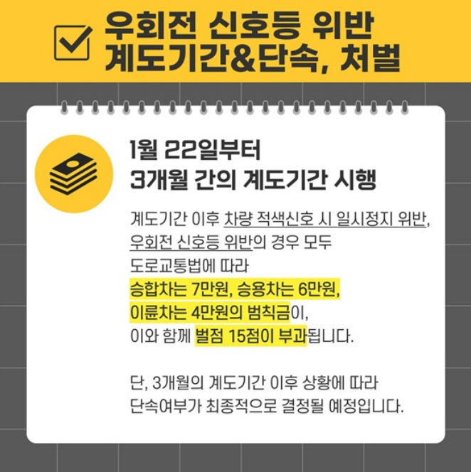 ▶ 우회전 신호등 위반 계도기간 · 단속, 처벌