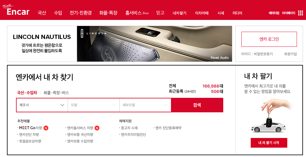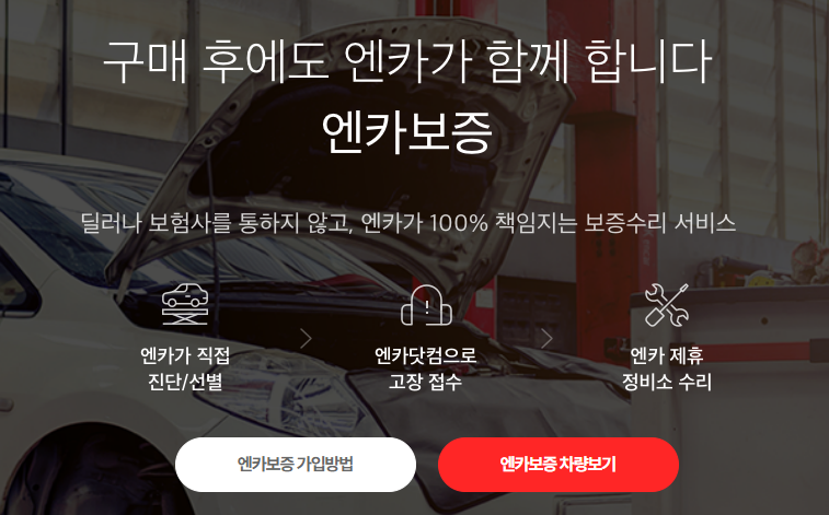 허위매물도 최대한 관리해서 나름 깔끔한 편으로 알고 있습니다. 오픈마켓형 플랫폼 특성상 100% 깨끗할 수는 없겠지만 말이죠. 엔카 보증 서비스, 엔카 홈서비스 등을 출시해 신뢰도와 편의성을 높였습니다.