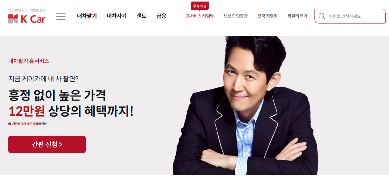 딜러가 서비스를 신청해야만 가능한 엔카 홈서비스와는 달리 케이카는 10년 혹은 20만km 이상되는 차량이 아니면 국산, 수입차 관계없이 모두 홈서비스 이용 가능합니다.