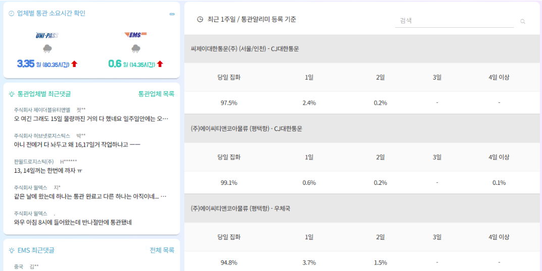 이를 위해 웹사이트 또는 앱의 상단 검색 창에 택배사 종류에 관계없이 운송장번호를 입력하고 검색하면 해당 물품의 통관 정보를 확인할 수 있습니다.