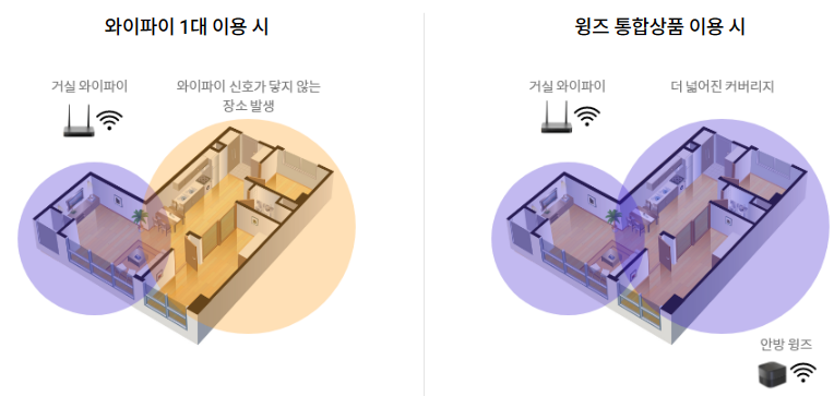 공통사항으로는 인터넷 약정기간이 끝나게 된다면 반납을 해야 하므로 파손이나 분실을 주의하셔야 합니다. 와이파이 증폭기를 이용하시게 되면 집 안 구석구석에도 와이파이를 마음껏 이용하실 수가 있는데요.