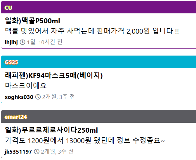 펴늬(Pyony)는 사용자들이 편의점 행사 정보를 공유하고 의견을 나눌 수 있는 공간도 제공합니다.