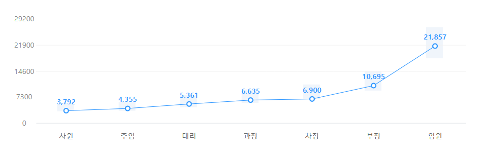 ▲ 대졸 신입사원 초봉 : 4,936만 원 ▲ 전체 평균 연봉 : 9,641만 원 / 평균 근속연수 : 13년 9개월 ▲ 직급별 평균연봉 * 계약직을 포함한 경영관리, 생산/제조 등 직무 전체 평균연봉임을 감안하시길 바람 - 사원 : 3,318만 원 ~ 5,823만 원 - 주임 : 3,623만 원 ~ 5,898만 원 - 대리 : 4,527만 원 ~ 8,068만 원 - 과장 : 5,763만 원 ~ 9,491만 원 - 차장 : 6,830만 원 ~ 11,027만 원 - 부장 : 9,233만 원 ~ 14,609만 원 - 임원 : 18,357만 원 ~ 26,928만 원