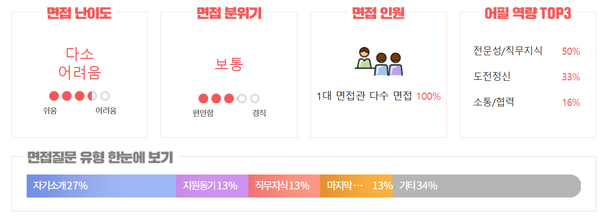 ▲ 면접관님께서 편한 분위기로 면접 진행을 했습니다. 그래서 긴장은 거의 하지 않았고, 직무면접은 회사에 대해 많이 알면 유리할 것 같습니다.