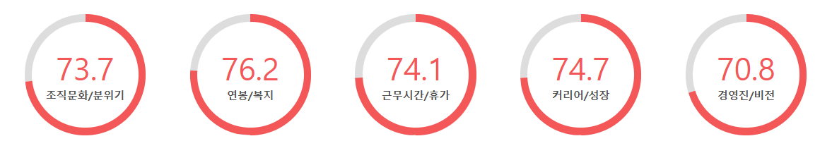 6. 전, 현직자의 기업 장단점 평가 : 73.9점