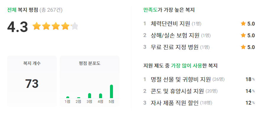 급여/보상 인센티브 및 성과급, 야근 및 휴일 특근 수당, 연차 수당, 퇴직연금 및 퇴직금, 우리 사주 및 스톡옵션, 우수사원 금전포상, 위험 수당, 장기근속자 금전포상, 생일 선물 지원